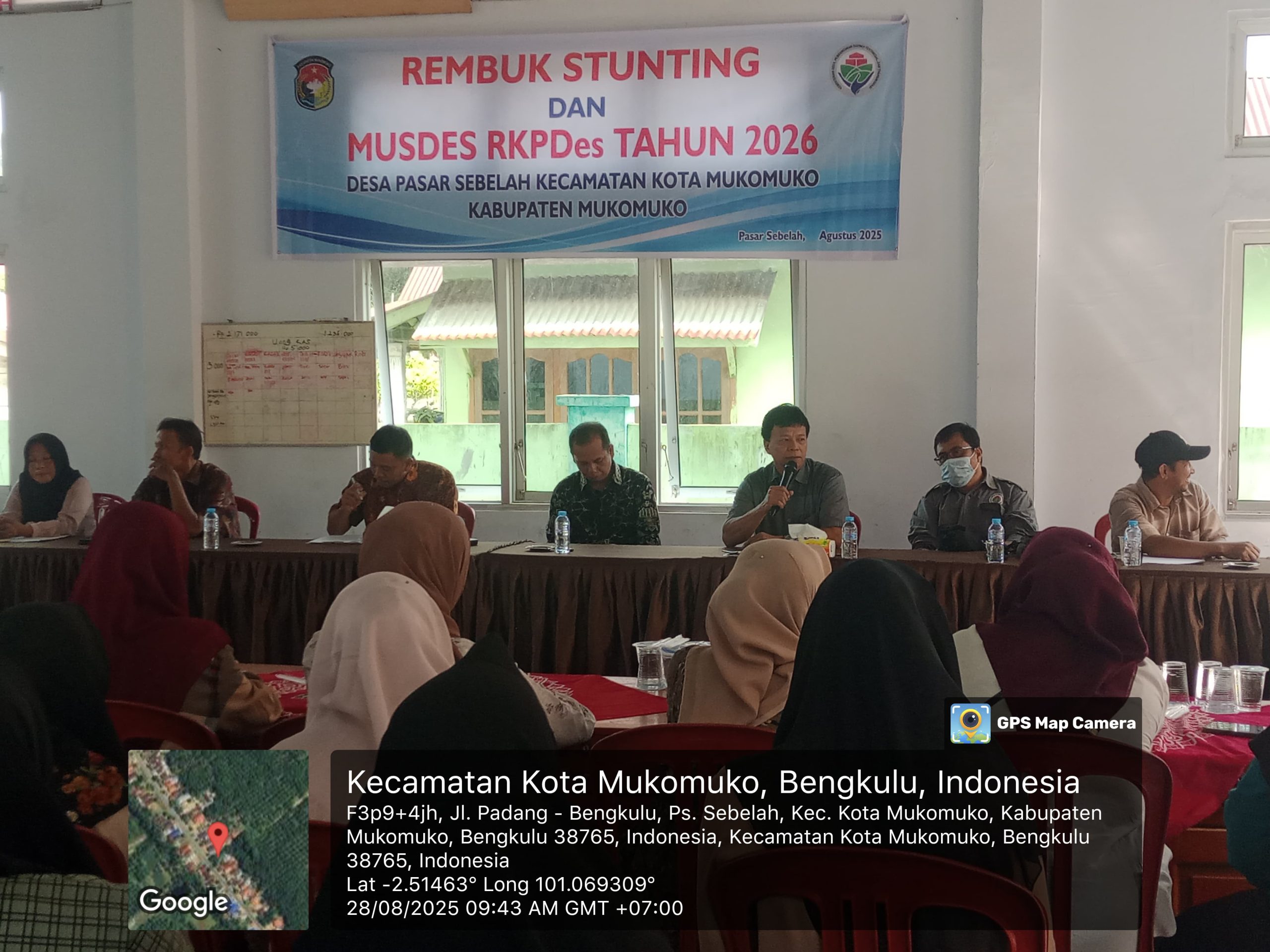 Bertempat di Ruang Rapat Kantor Desa Pasar Sebelah melaksanakan kegiatan Rapat Rembug Stunting dan Musyawarah Desa (Musdes) Penyusunan Rencana Kerja Pemerintah (RKP) Desa Tahun 2026.