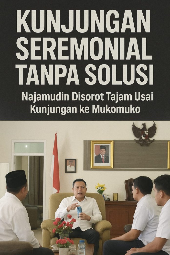NusantaraSatu.Net-Mukomuko — Kunjungan Ketua Dewan Perwakilan Daerah (DPD) RI, Najamudin, ke Kabupaten Mukomuko kembali menuai sorotan tajam.